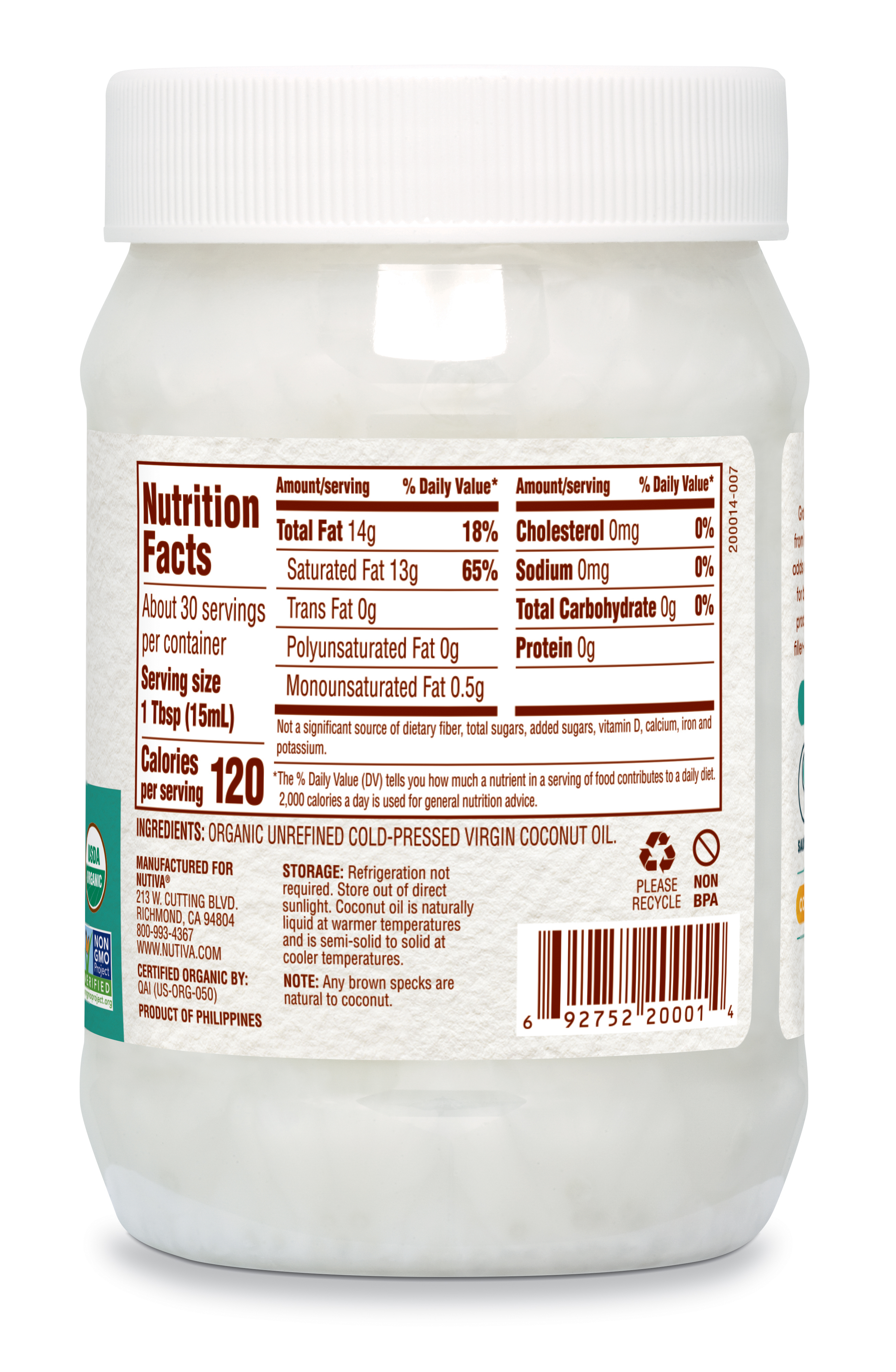 Nutiva Organic Cold Pressed Virgin Coconut Oil 15 Fl Oz Walmart Com