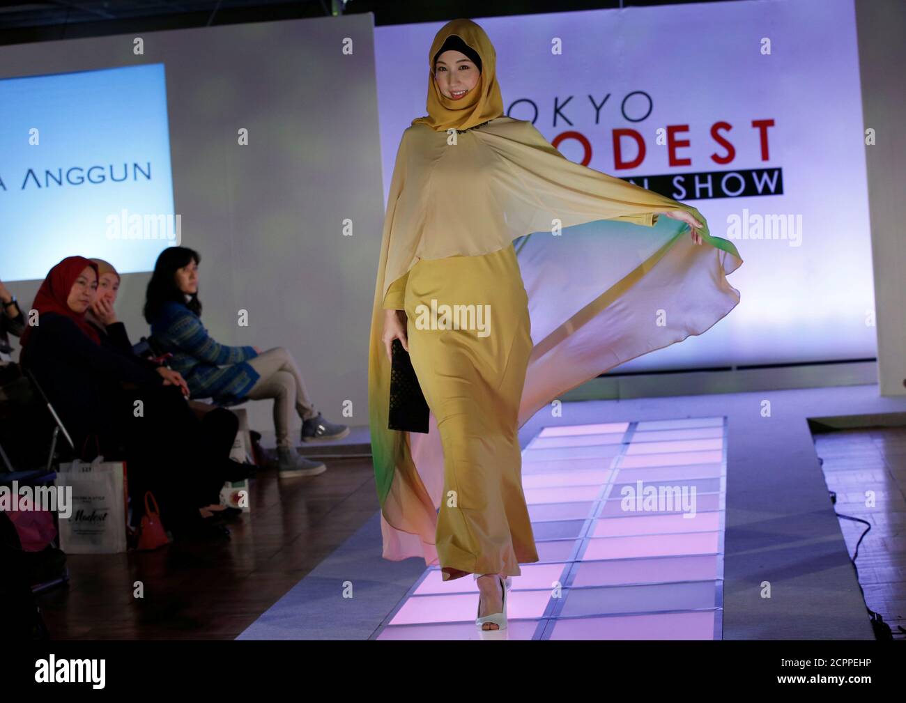 A Model Presents A Creation By Brand Alia Anggun During Tokyo Modest Fashion Show Muslim Fashion Show At Halal Expo Japan In Tokyo Japan November 22 2016 Reuters Toru Hanai Stock Photo Alamy